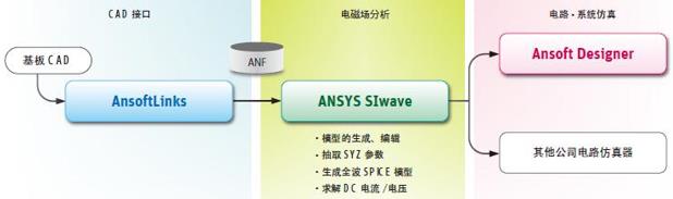 ANSYS SIwave可以直接導入各種版圖設計工具通過Ansoftlinks輸出的ANF文件。ANSYS SIwave求解得到的全波SPICE模型以及touchstone格式等可以導入Ansoft Designer以及其他各種格式的SPICE仿真器,并與IBIS,AMI等芯片模型結合進行整個系統的時域與頻域仿真。
