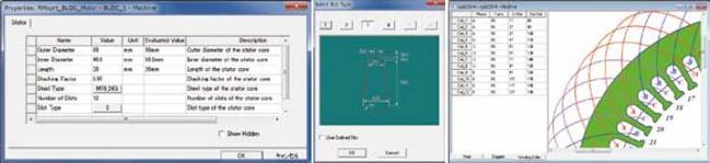 從模板中選擇轉子和槽型、材料特性、繞組信息及驅動電路等,僅將必要信息輸入屬性窗口就可以完成模型生成。不需要高級的CAD操作技術。