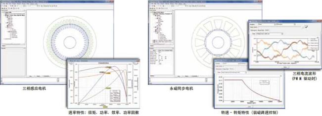 ● 基于輸入參數,使用磁路法瞬間輸出電機的各特性。使用普通電腦PC機幾秒就完成1次計算,因此,成百上千種設計方案的對比性分析也僅用幾分鐘就可以得到特性。