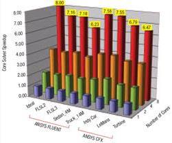 ANSYS中的流體動力學技術提供功能強大并且可擴展的高性能計算(HPC)選項。采用了ANSYS CFD中高性能計算的并行處理允許開展高保真度的流體動力學模擬,模擬中將包括更多幾何體細節,更大的系統(例如完整的360度葉片通道而非單個葉片通道),還有更復雜的物理現象(例如,非穩態湍流模型而非穩態湍流模型)。其結果有助于深入理解產品的性能,通過任何其他方式無法達到此效果。分析結果能夠產生巨大的商業利益,發現那些可能導致產品失效或者是故障延遲等設計問題。使用高性能計算深入理解詳盡的產品性能有助于提高對設計的信任程度。